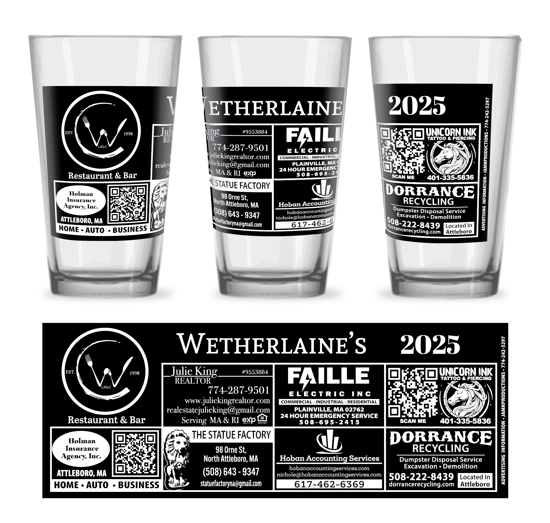 Put your brand directly into the hands of local customers. Pint glass advertising offers long-term, high-impact exposure in restaurants, bars, and breweries across Massachusetts, Rhode Island, New Hampshire, and Maine. With durable printing and daily use, your business stays visible sip after sip.