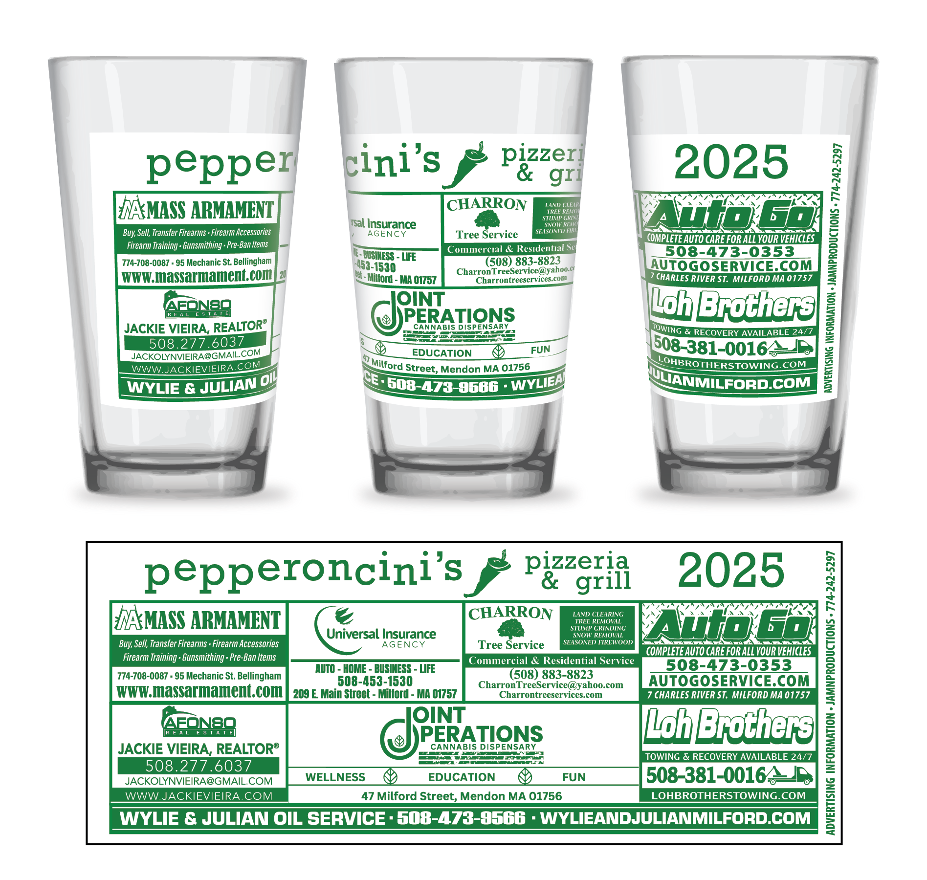 No-cost pint glasses with sharp, local business ads